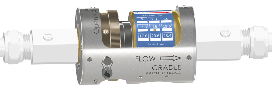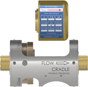 Designed for flexibility and versatility, the Cradle houses the modular Cartridge, which contains up to three integrated Flow Controllers. This modular system offers a range of flow rate variants, ensuring the perfect flow for every application. Whether it’s a high-flow demand or precise water control, the Cradle delivers exceptional performance, adapting to your specific needs.